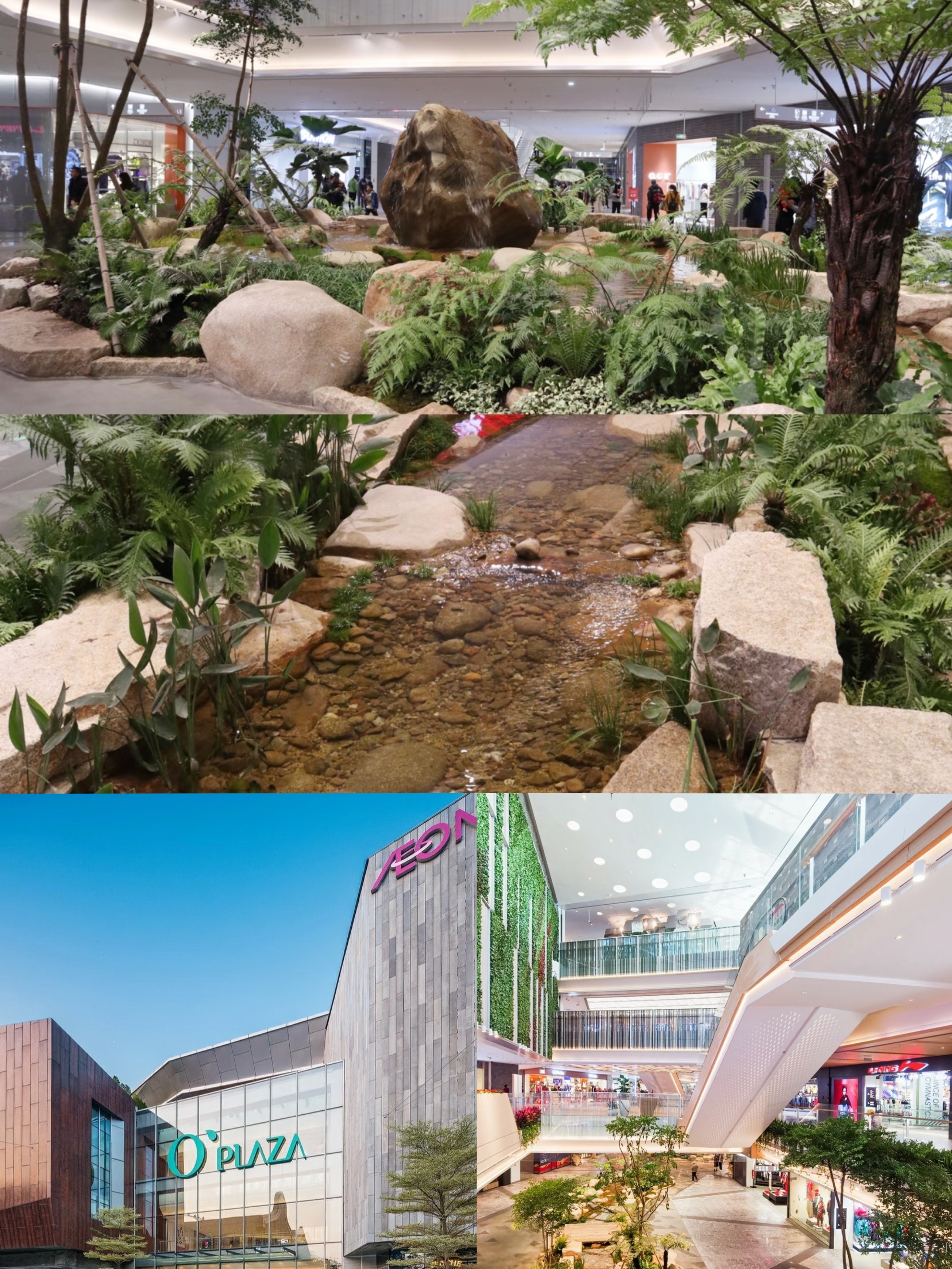 小桥、流水、水雾弥漫,配上一面20米高的“植物墙”,就像走进了一个室内热带雨林,一边逛街一边“游园”。